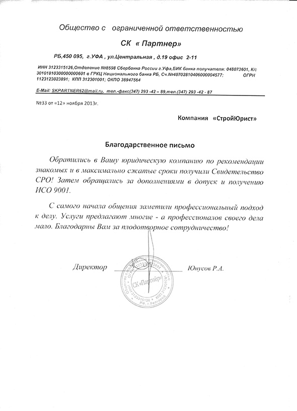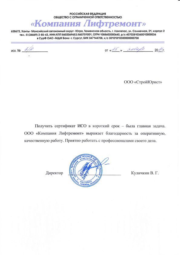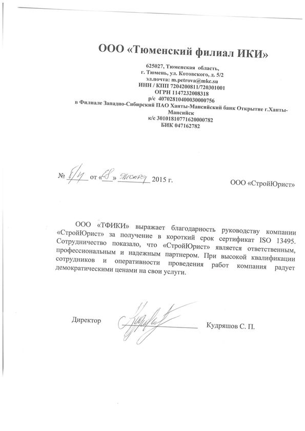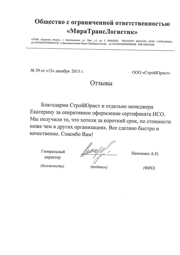 Отзывы клиентов "СтройЮрист" по ISO в Кемерово