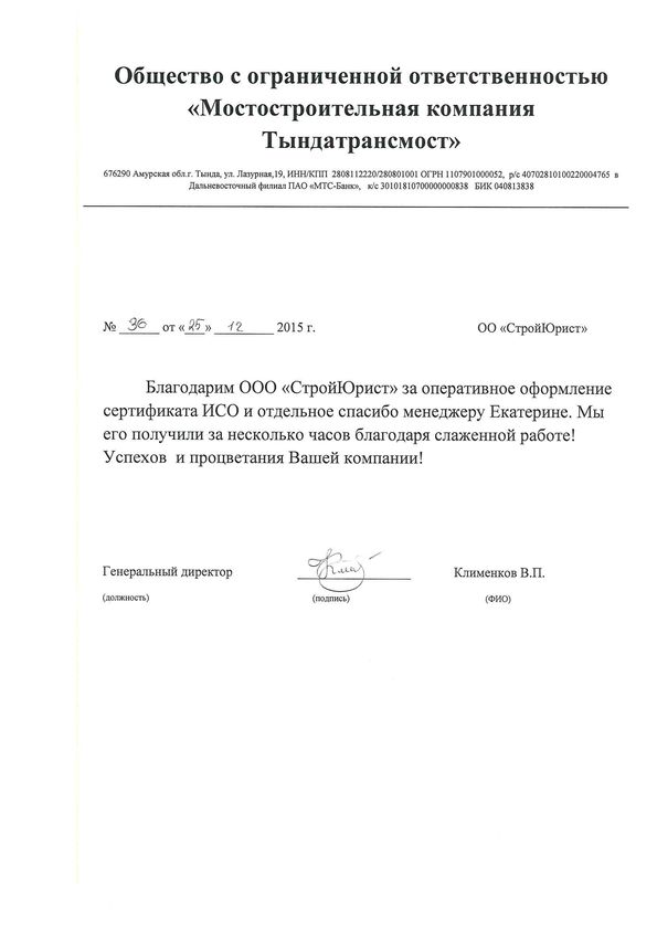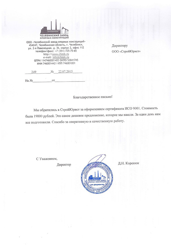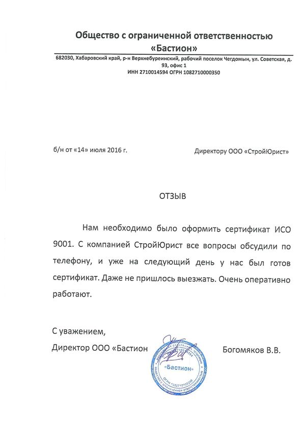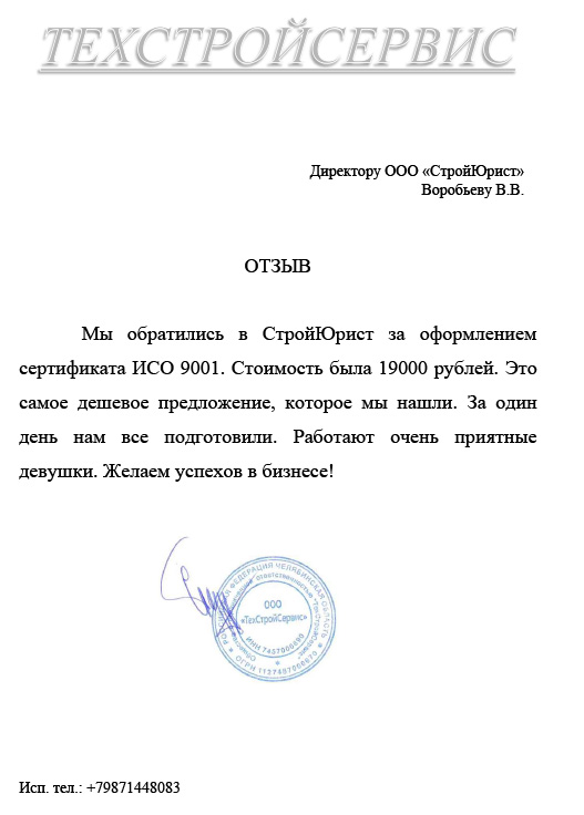 Отзывы клиентов "СтройЮрист" по ISO в Кемерово
