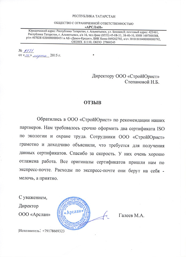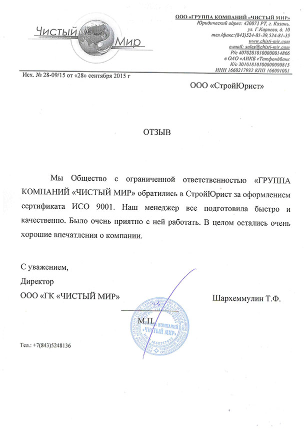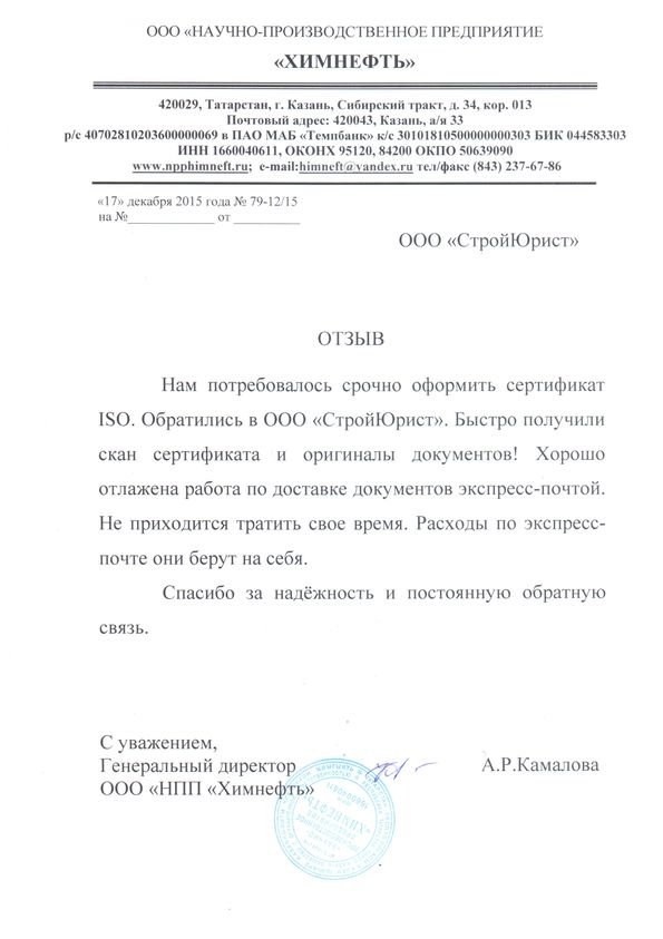 Отзывы клиентов "СтройЮрист" по ISO в Кемерово