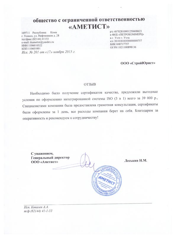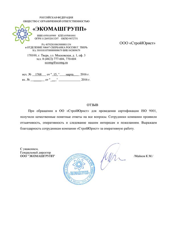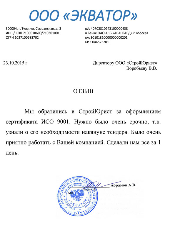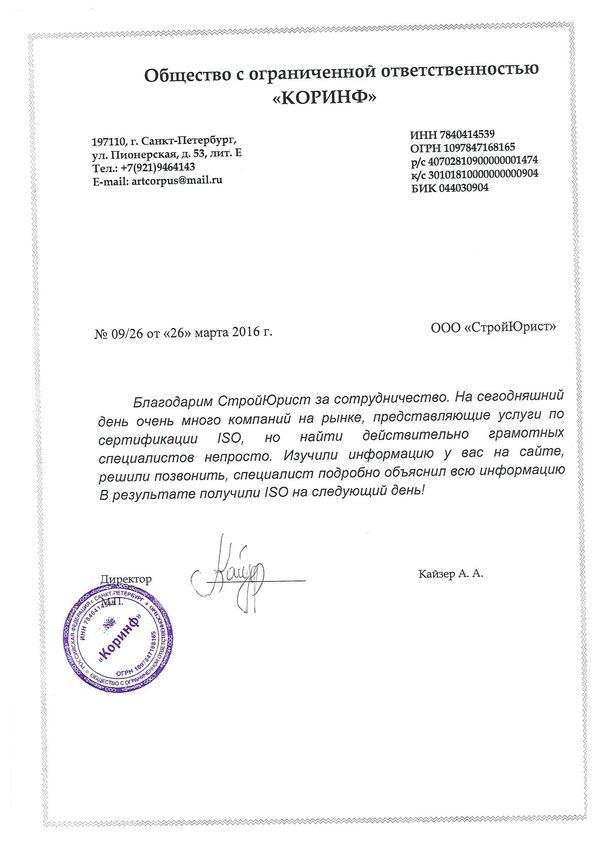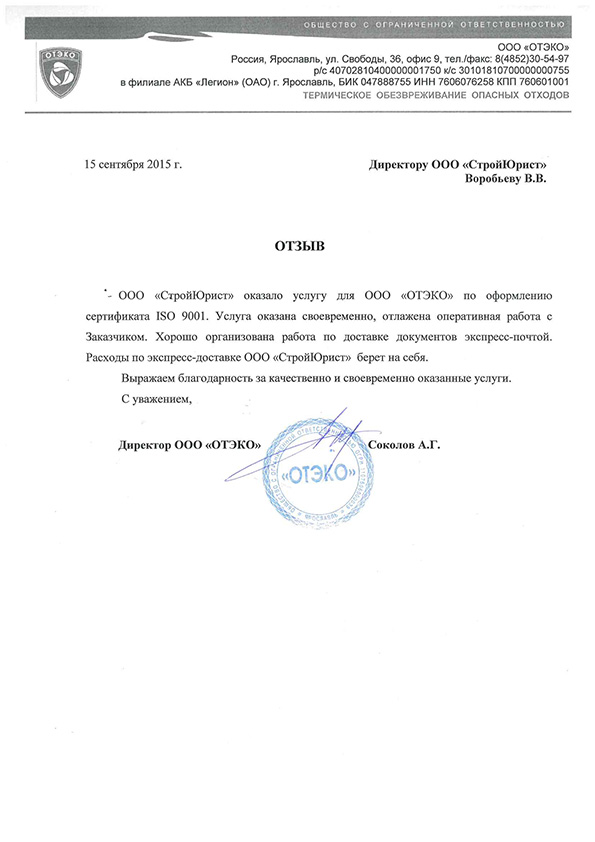 Отзывы клиентов "СтройЮрист" по ISO в Кемерово