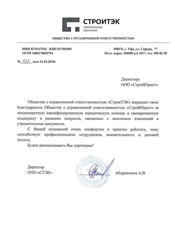 Отзывы клиентов "СтройЮрист" по регистрации фирм в Кемерово