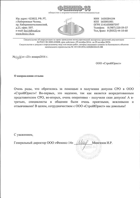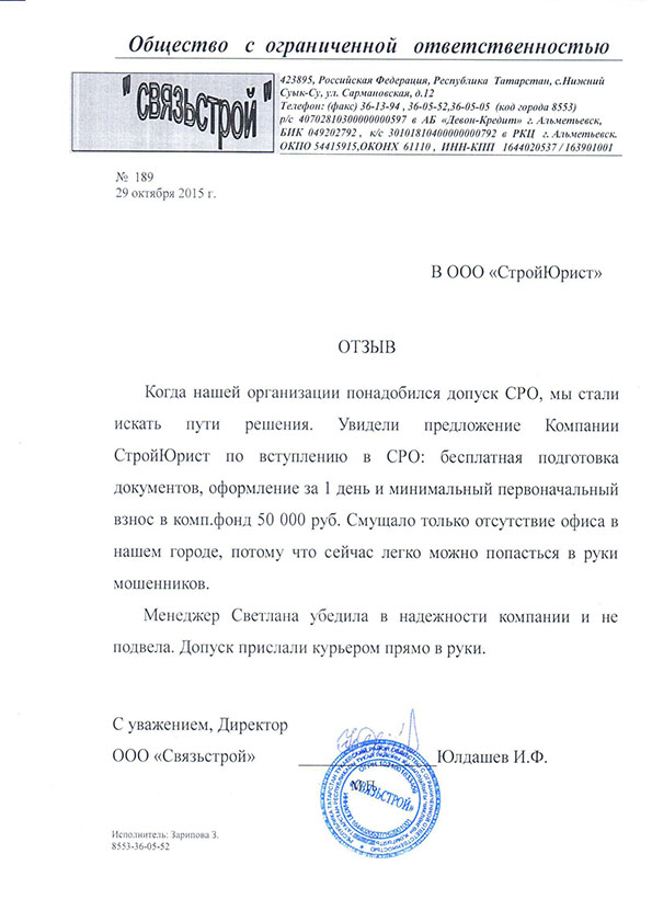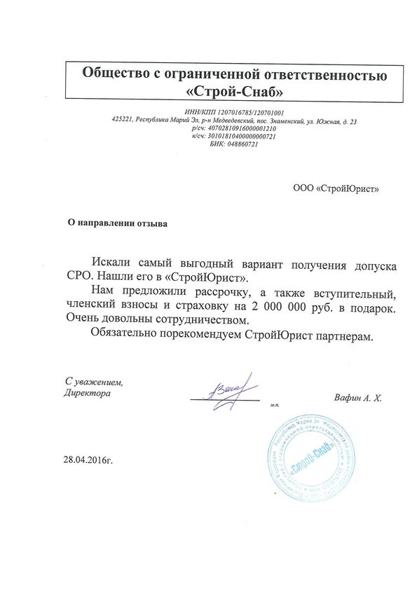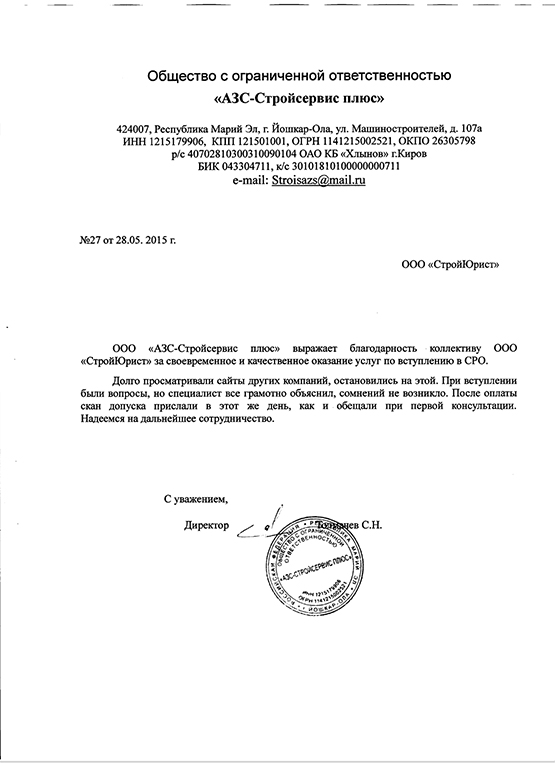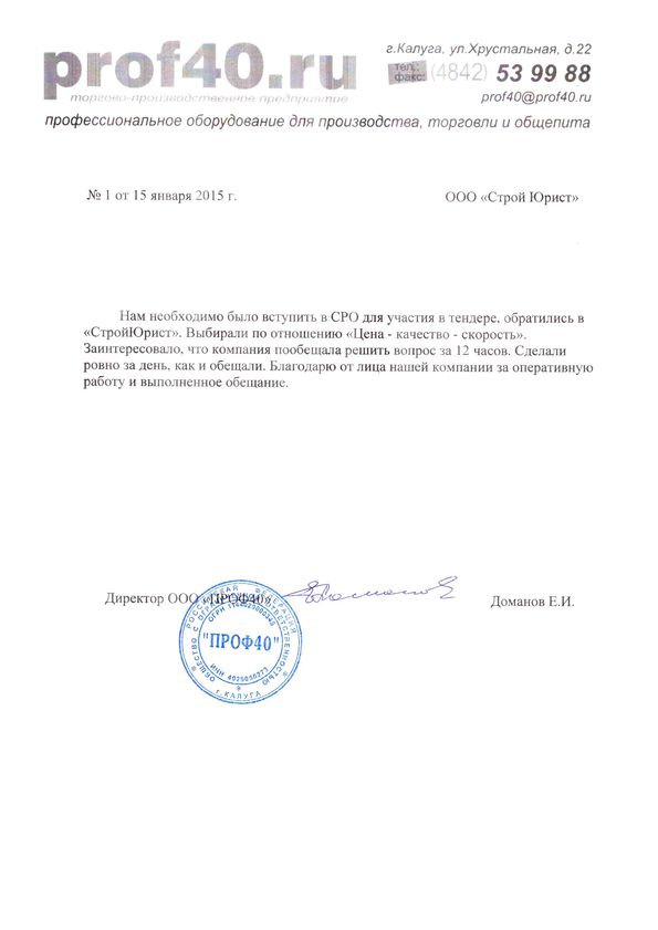 Отзывы клиентов "СтройЮрист" по вступлению в СРО в Кемерово