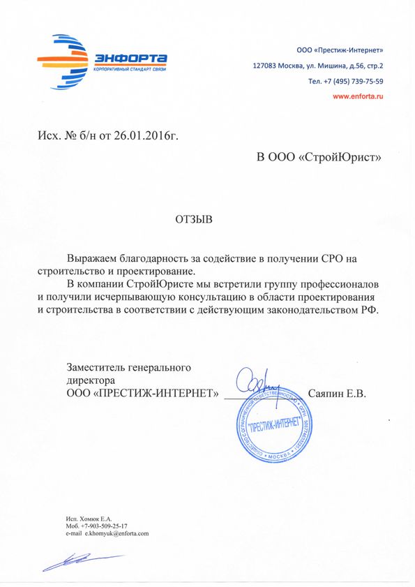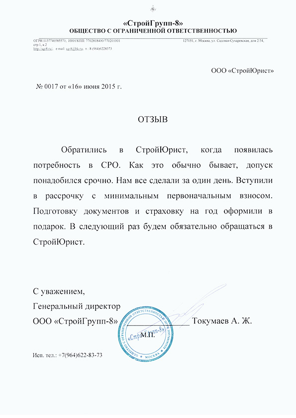 Отзывы клиентов "СтройЮрист" по вступлению в СРО в Кемерово