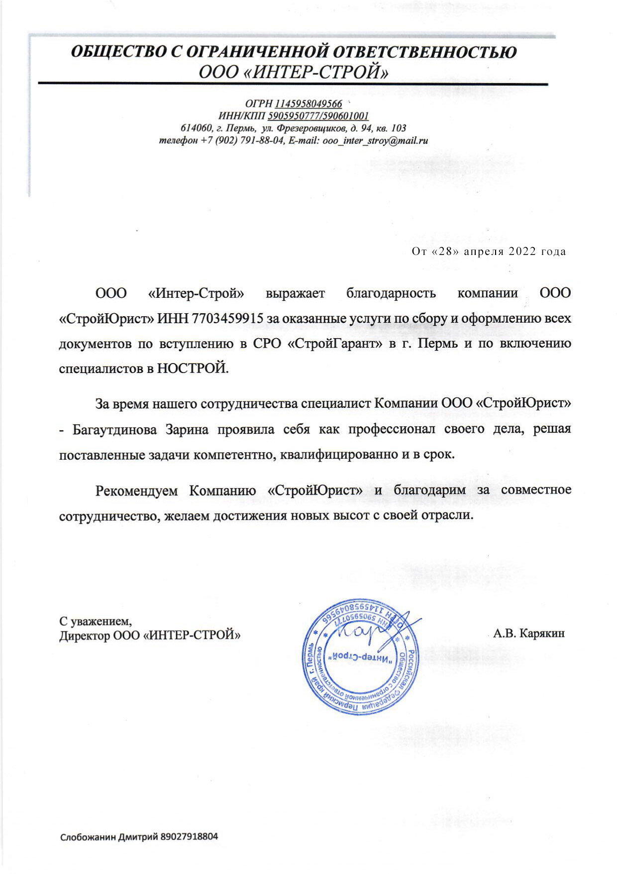 Отзывы клиентов "СтройЮрист" по вступлению в СРО в Кемерово
