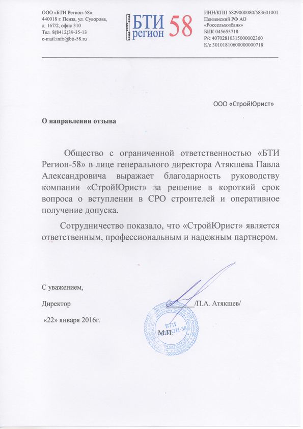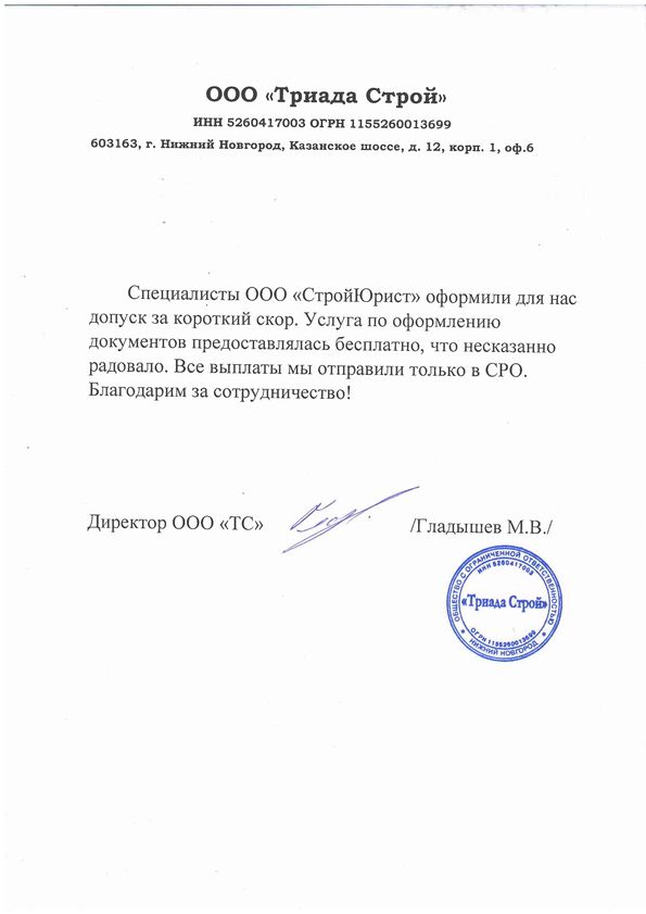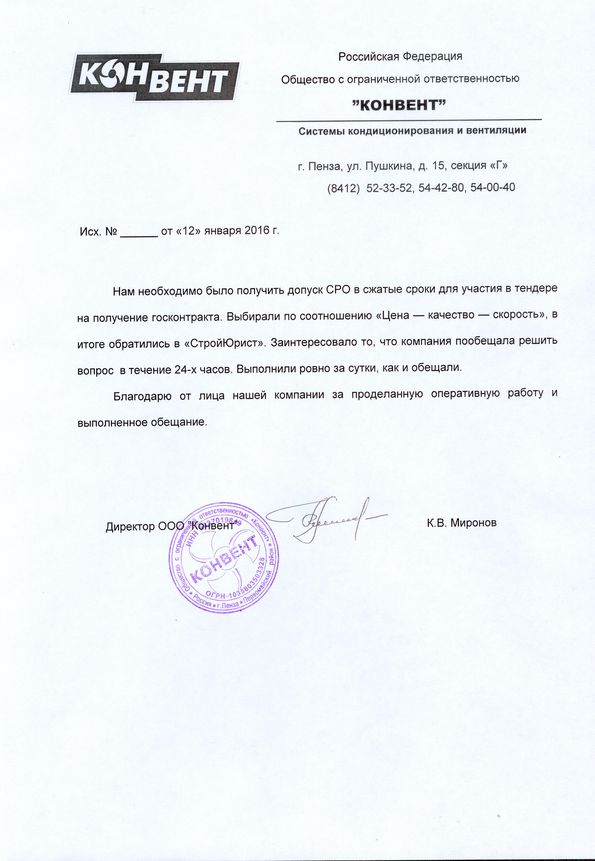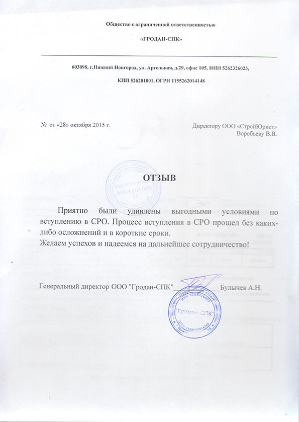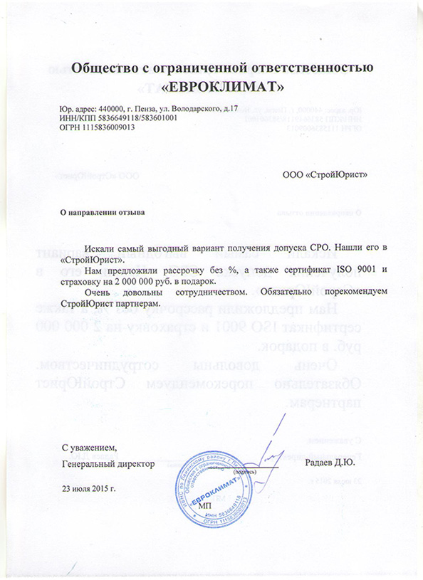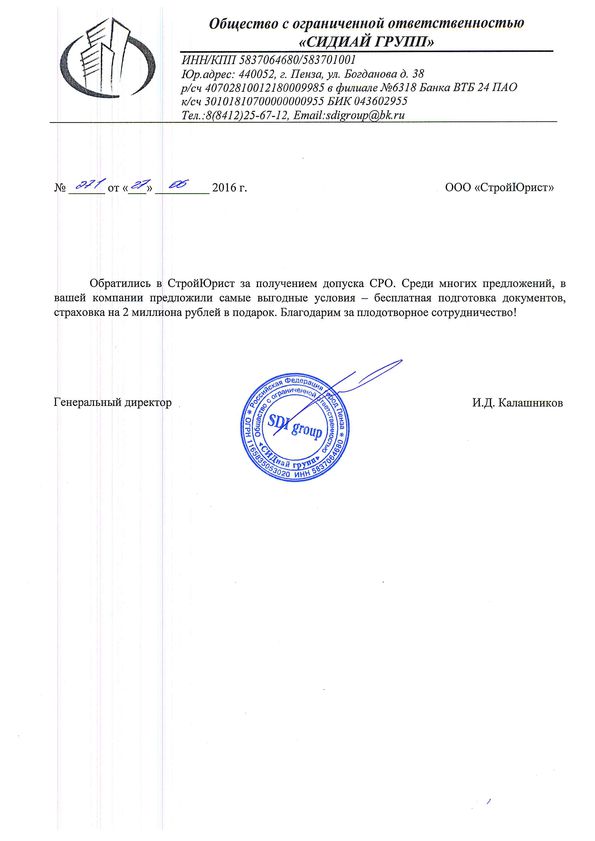 Отзывы клиентов "СтройЮрист" по вступлению в СРО в Кемерово