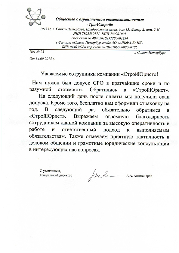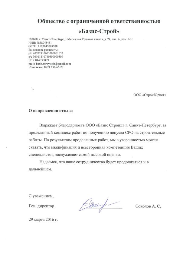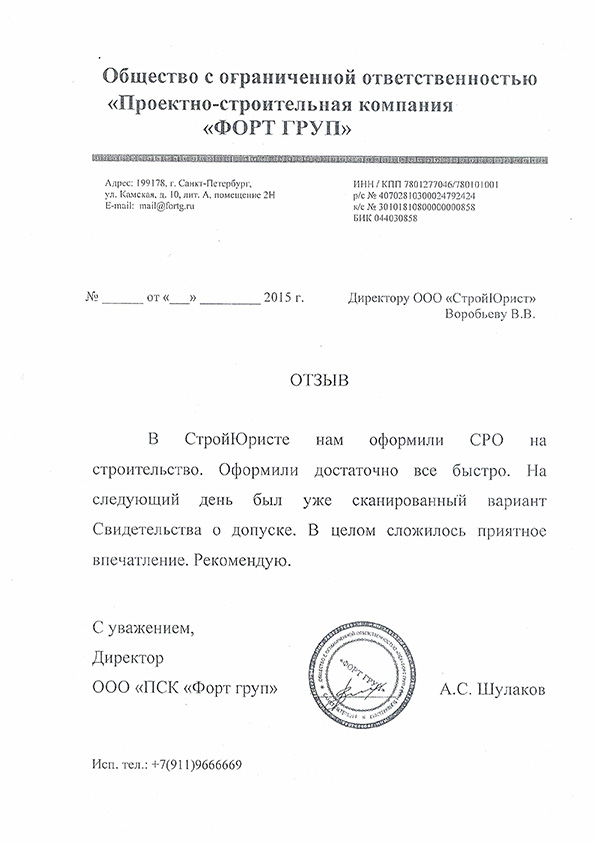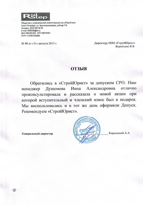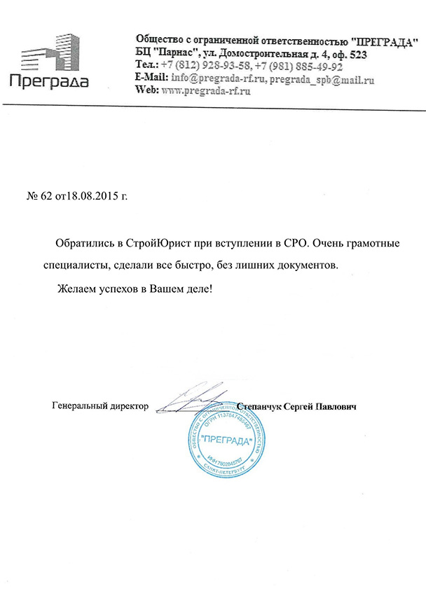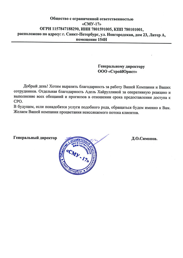Отзывы клиентов "СтройЮрист" по вступлению в СРО в Кемерово