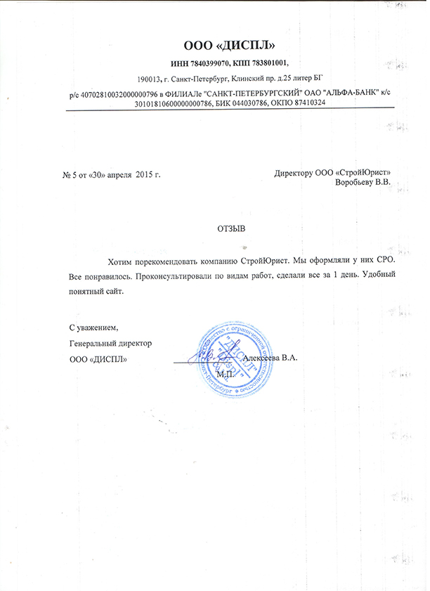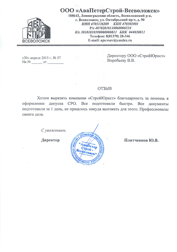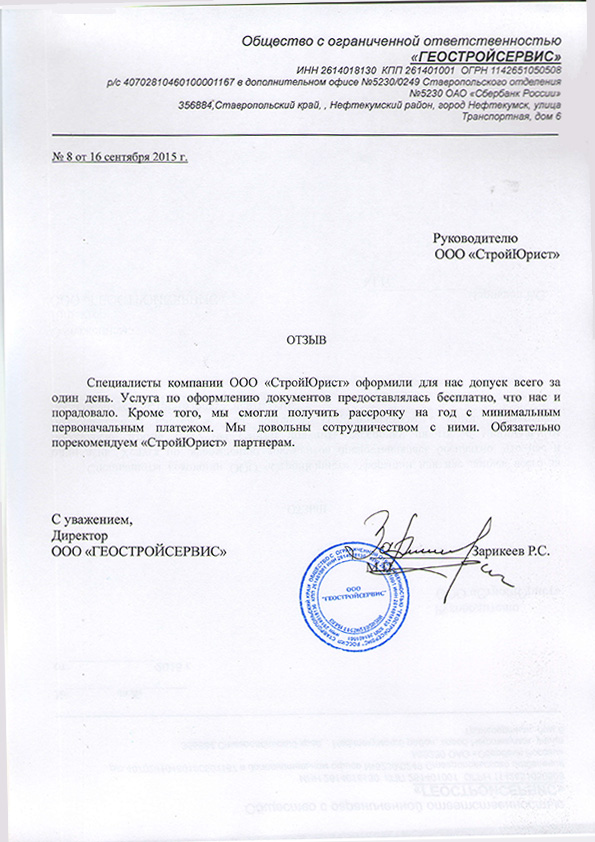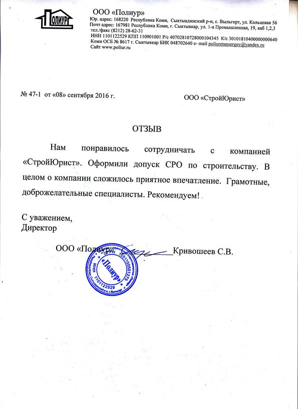 Отзывы клиентов "СтройЮрист" по вступлению в СРО в Кемерово