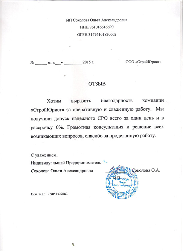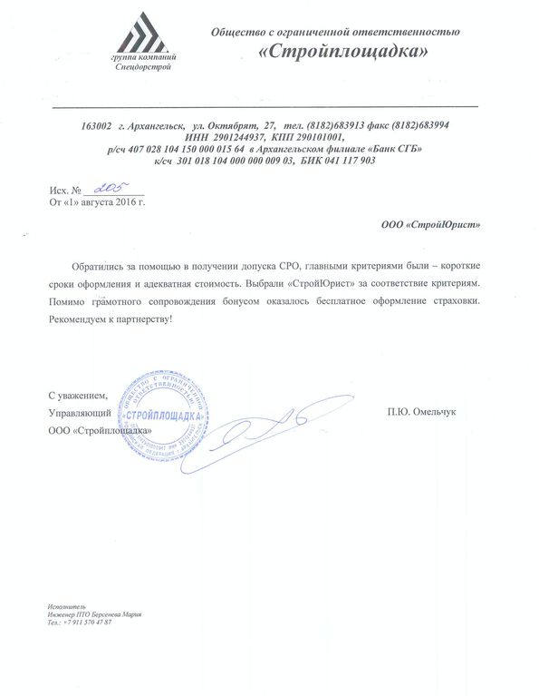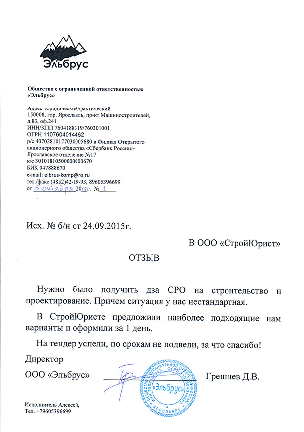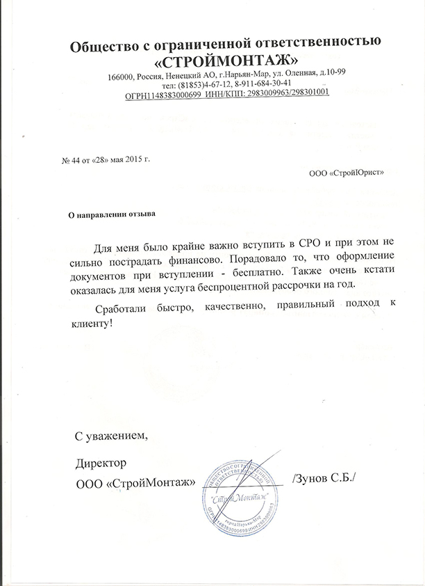 Отзывы клиентов "СтройЮрист" по вступлению в СРО в Кемерово