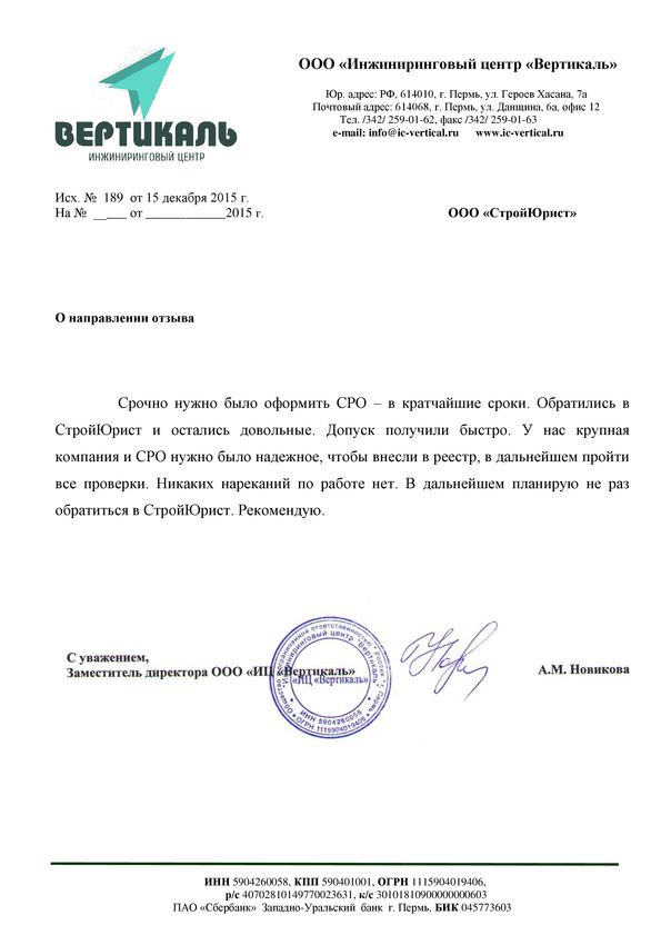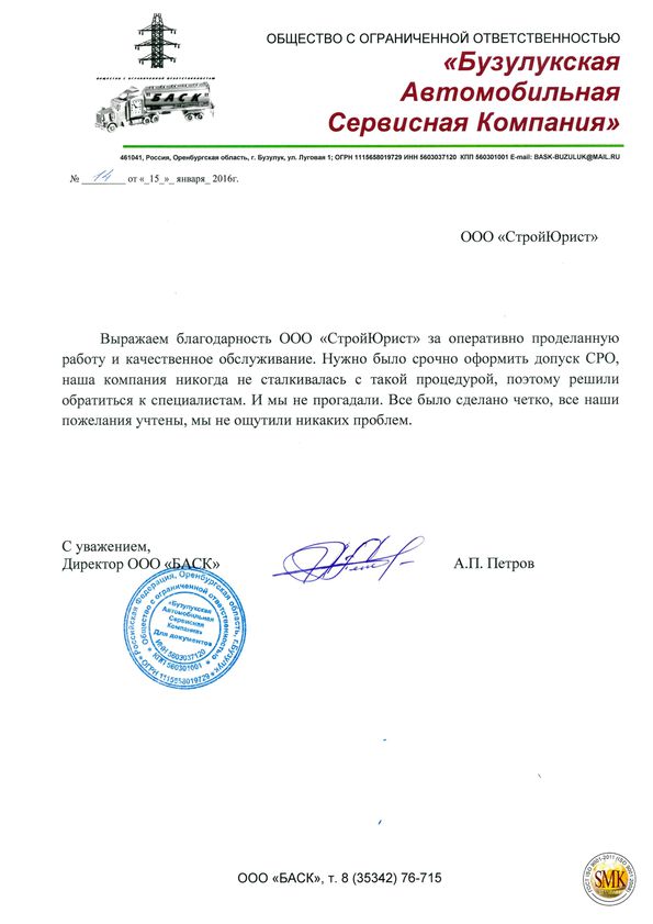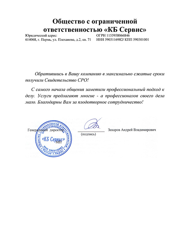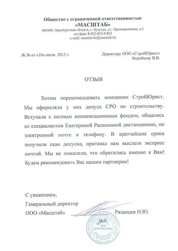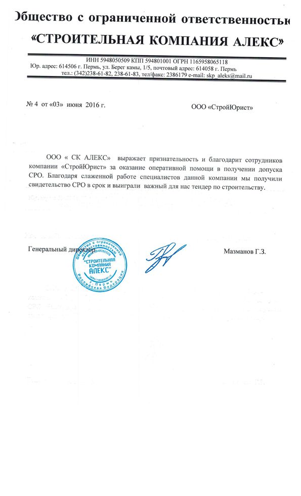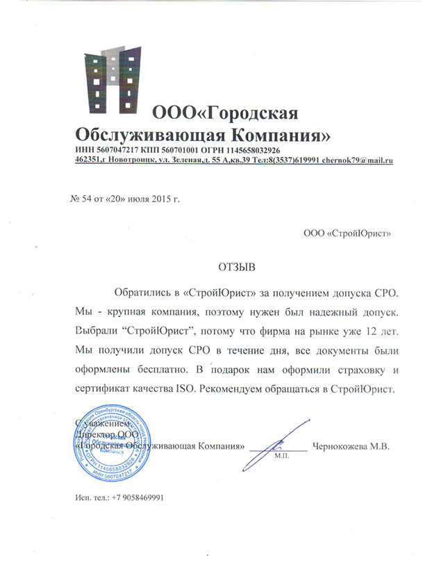 Отзывы клиентов "СтройЮрист" по вступлению в СРО в Кемерово