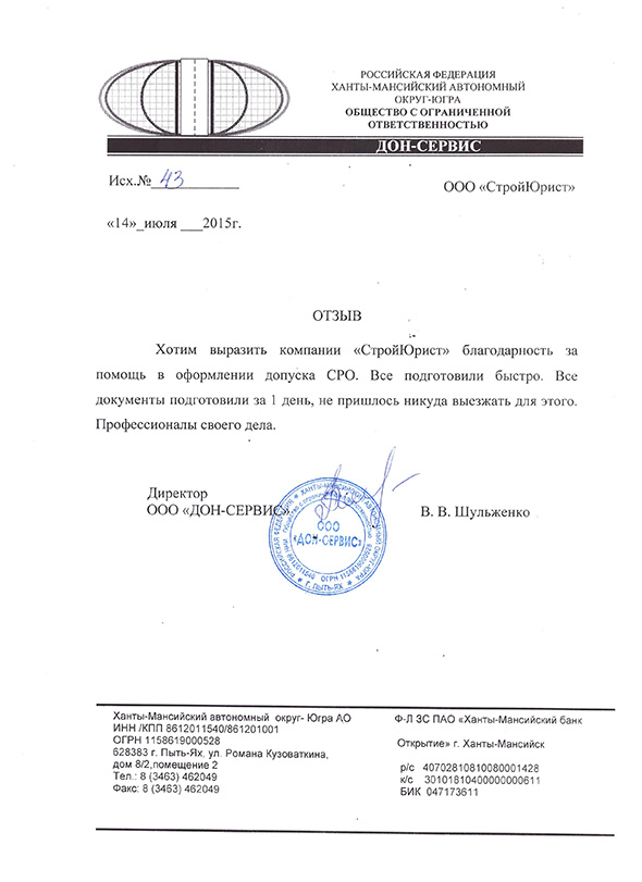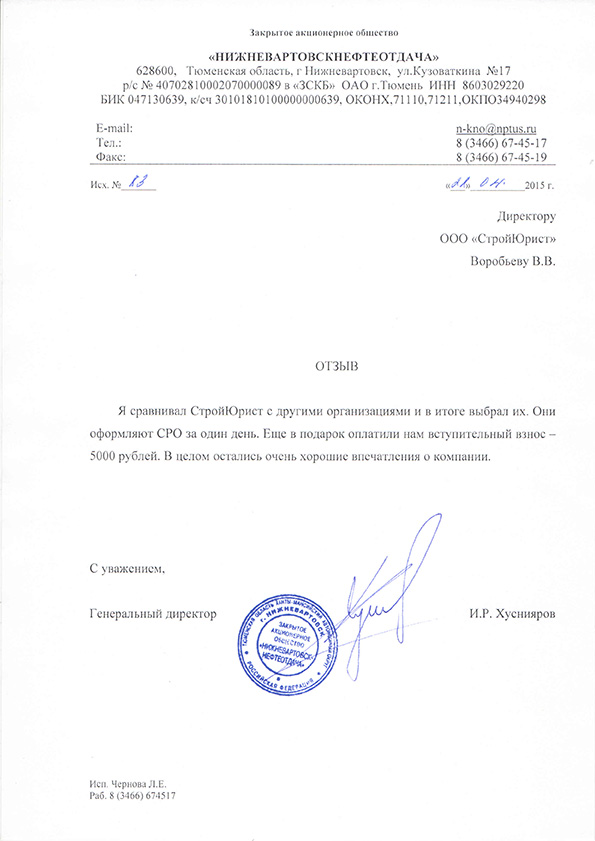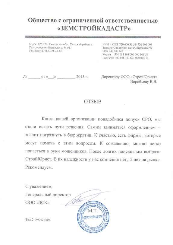 Отзывы клиентов "СтройЮрист" по вступлению в СРО в Кемерово