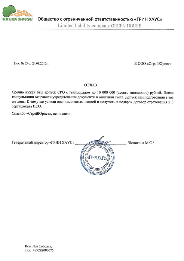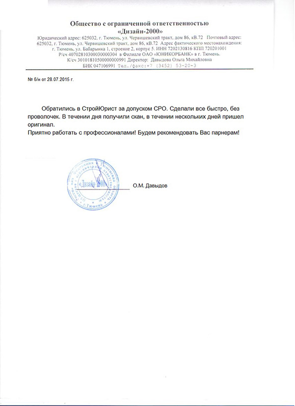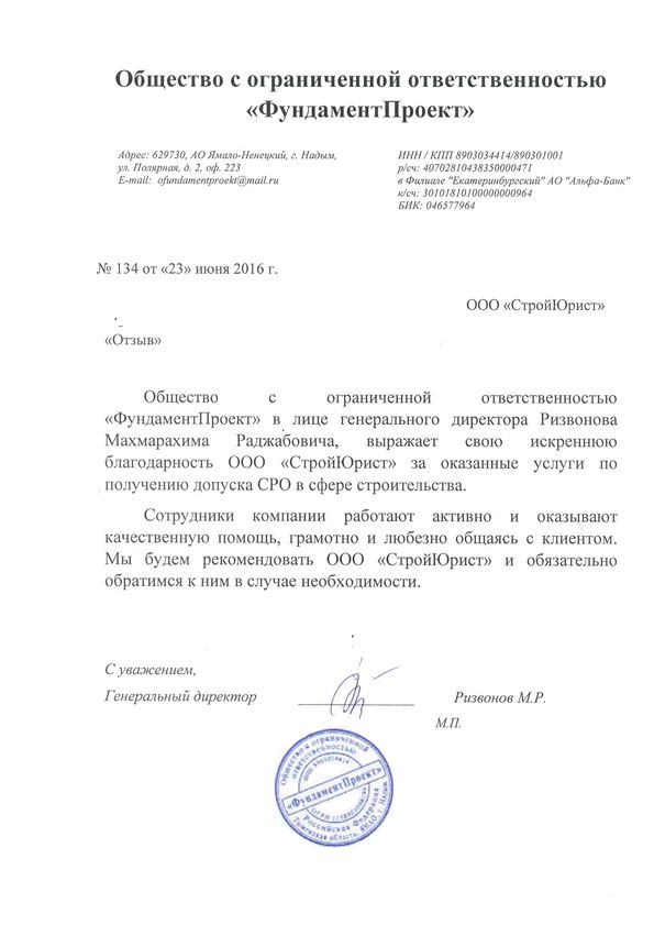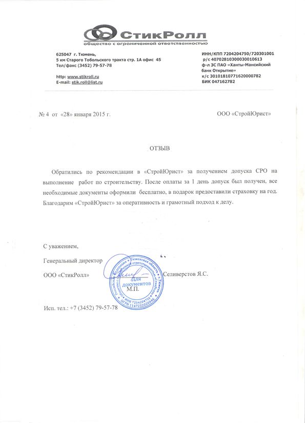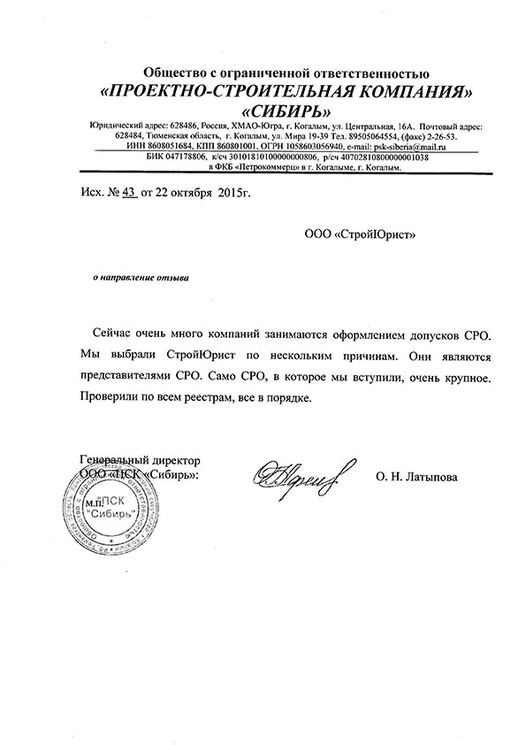 Отзывы клиентов "СтройЮрист" по вступлению в СРО в Кемерово