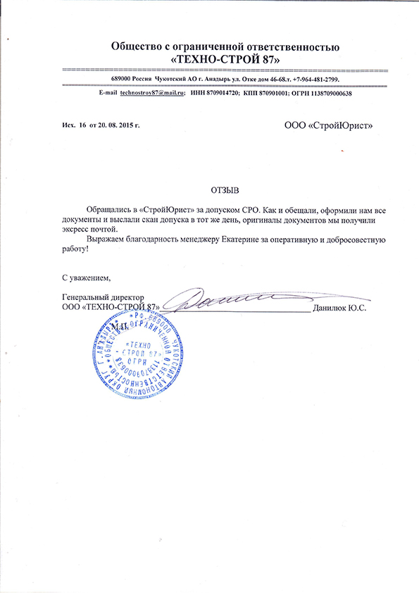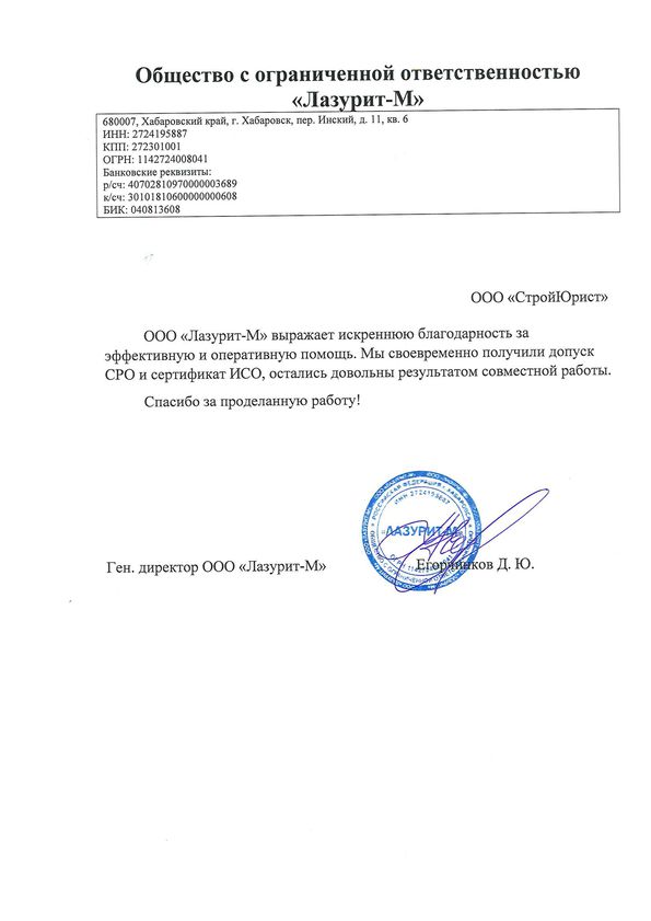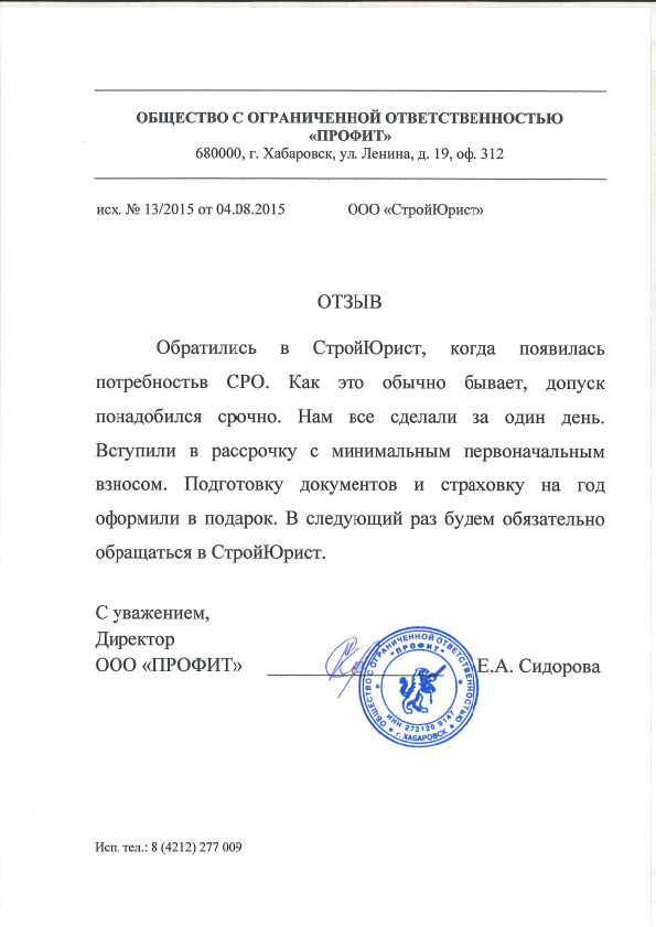 Отзывы клиентов "СтройЮрист" по вступлению в СРО в Кемерово