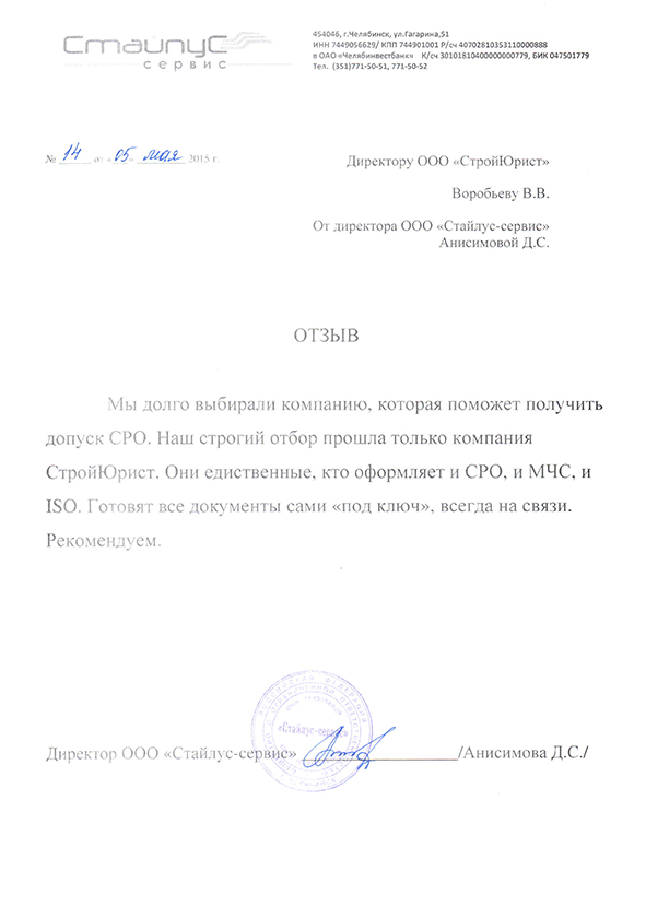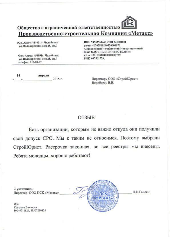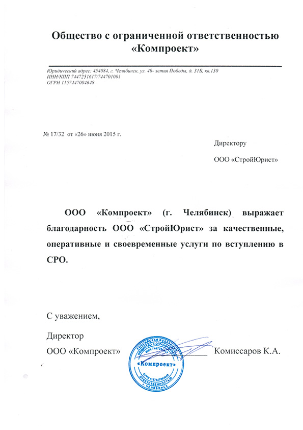 Отзывы клиентов "СтройЮрист" по вступлению в СРО в Кемерово