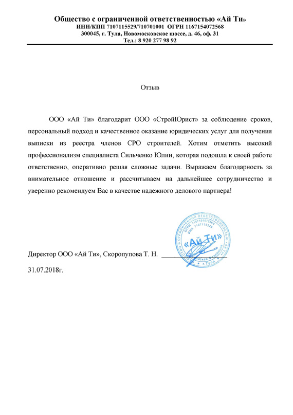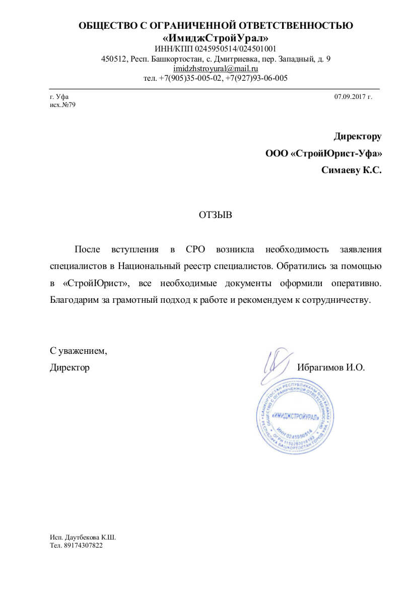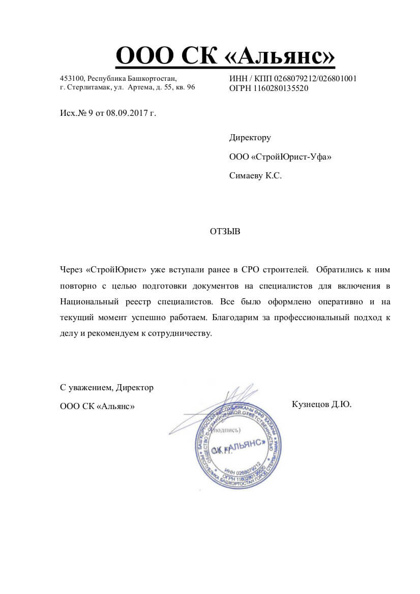 Отзывы клиентов "СтройЮрист" по вступлению в СРО в Кемерово
