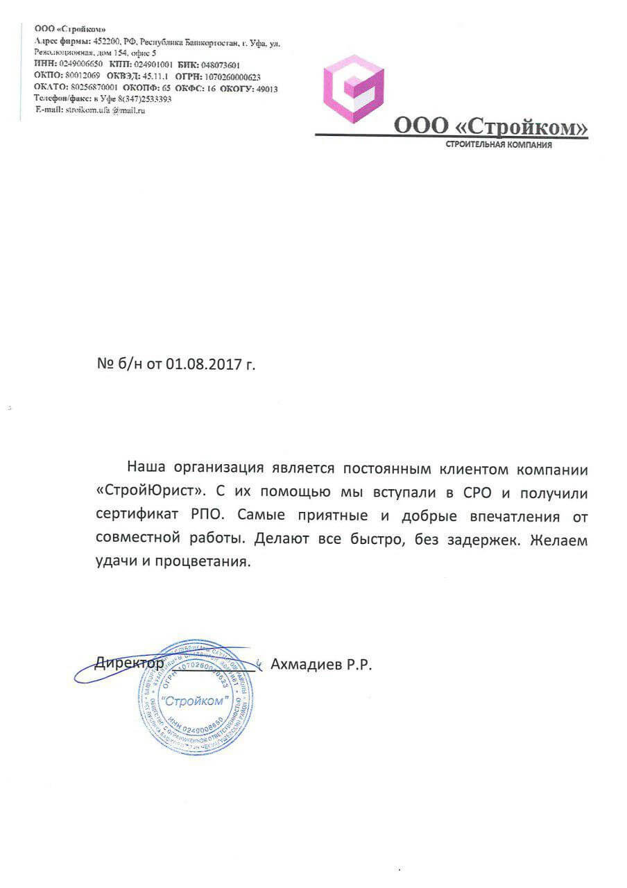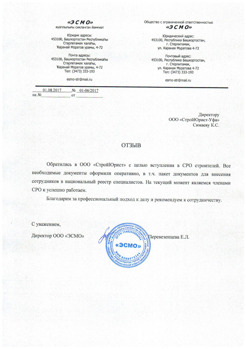 Отзывы клиентов "СтройЮрист" по вступлению в СРО в Кемерово