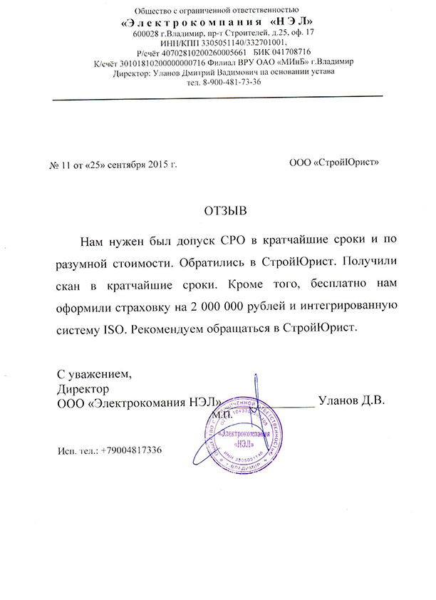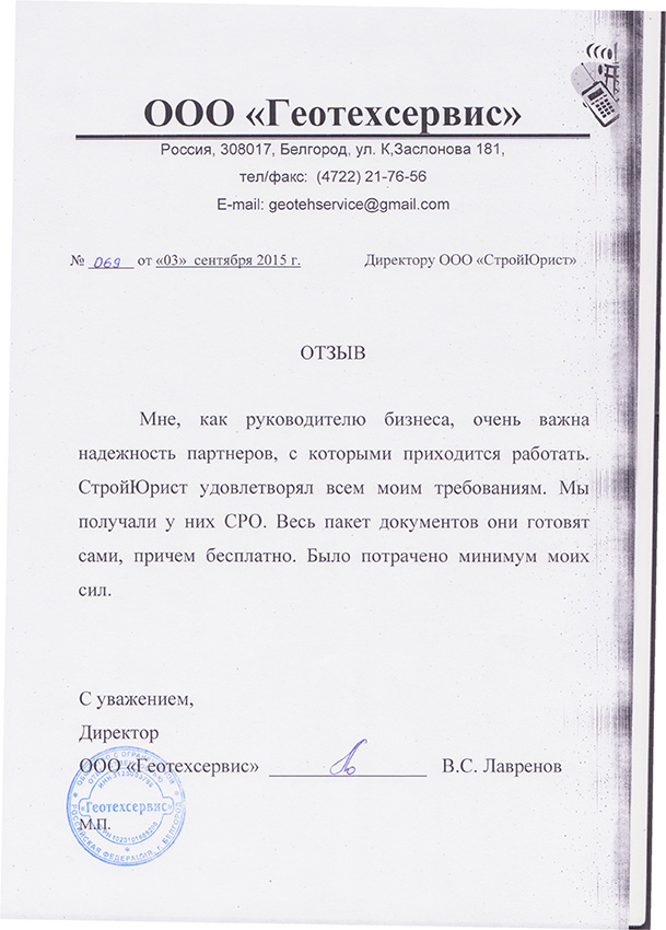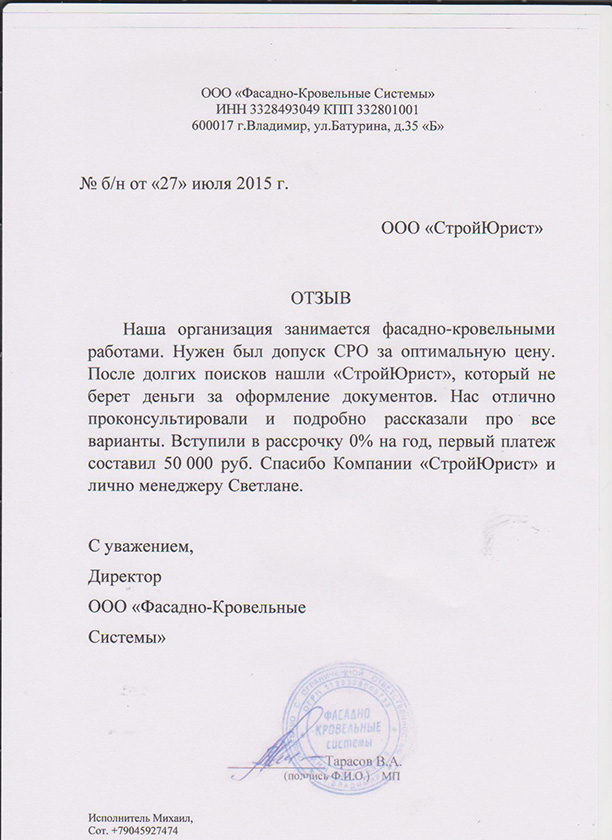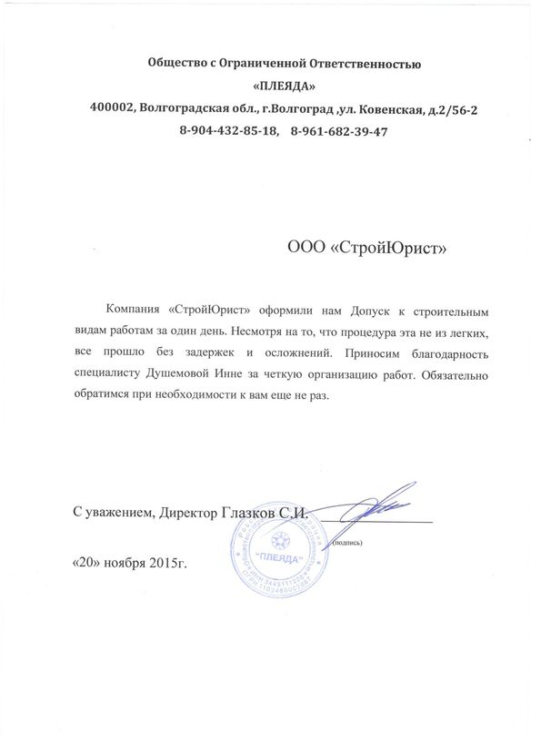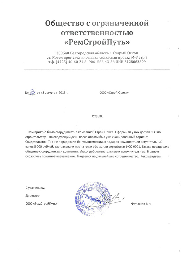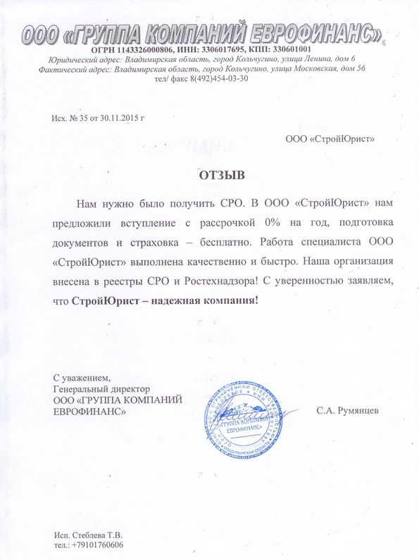 Отзывы клиентов "СтройЮрист" по вступлению в СРО в Кемерово